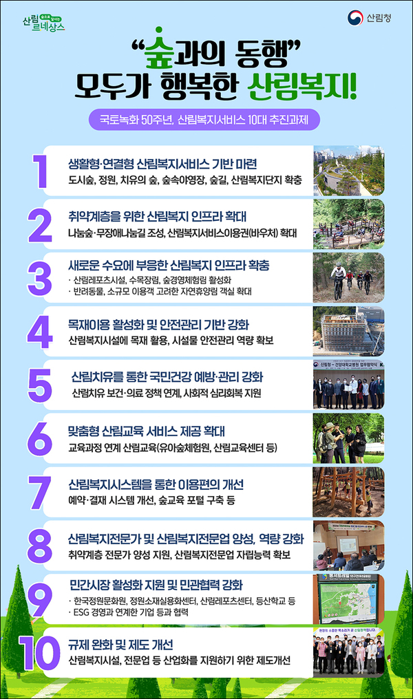 • 국토녹화 50주년 계기 ‘산림복지서비스 10대 추진과제’ 발표