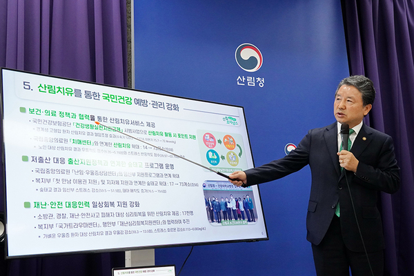 아울러 산림 치유를 보건·의료 정책과 연계하고 유아, 청소년들이 숲에서 맘껏 정서를 함양할 수 있도록 교육과정과 연계한 산림교육 프로그램도 확대해 나간다.