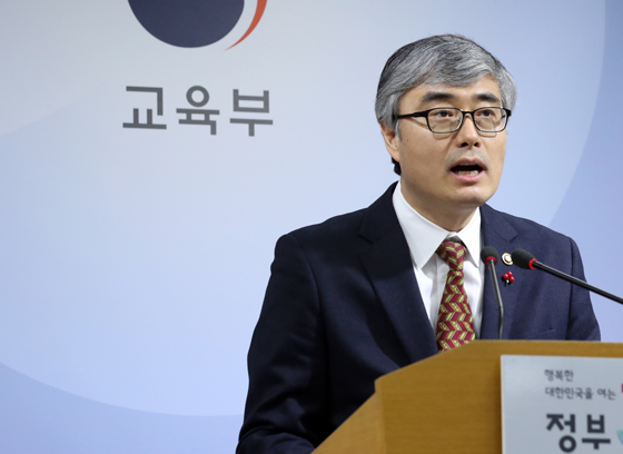 이영 교육부 차관이 22일 오전 정부세종청사 교육부 브리핑룸에서 지능정보화사회에 대응한 중장기 교육정책 방향과 전략을 발표하고 있다.<사진=연합뉴스 제공> |