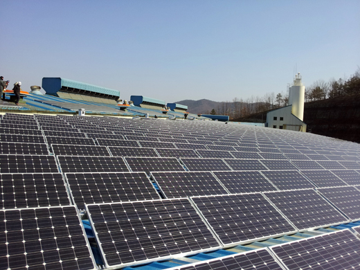 한 기업의 지붕형 태양광 발전설비 모습.그동안 보급된 태양광 설비 중 63%가 농촌에 설치되는 등 농촌 지역 태양광 사업이 활발히 진행되고 있으나, 주로 외지 기업이나 개인 주도로 추진되고 농민들은 정보부족, 지원체계 미비 등으로 직접 참여하지 못해 오히려 개발반대의 주체가 되는 경우가 있었다.