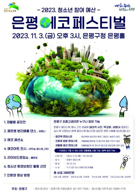 올해 은평구 참여예산사업에 선정된 은평구 청소년 자원순환 인식개선 행사로 ‘은평 에코페스티벌’이 마련됐다. 사업 목적은 청소년들의 자원순환 인식을 개선해 일상에서 환경보호를 실천하기 위함이다.
