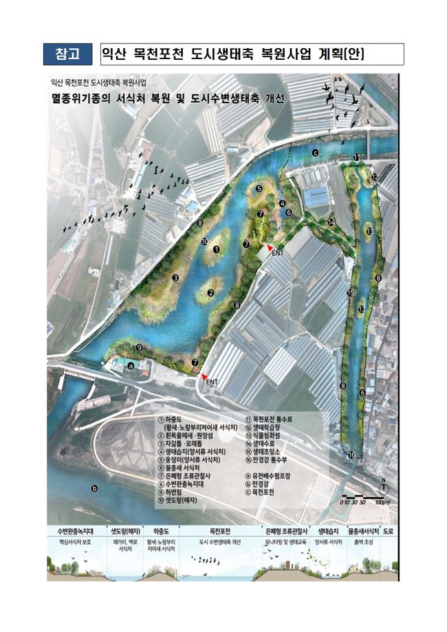 시는 국가 신규사업으로 2024년부터 2026년까지 총사업비 60억 원을 투입해 `익산 목천포천 도시생태축 복원사업`을 추진한다.