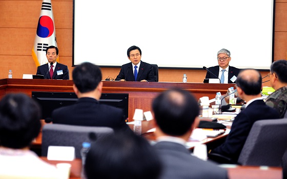 황교안 대통령 권한대행 국무총리가 4일 정부서울청사에서 열린 국방부와 외교부.통일부.국가보훈처 등 안보관련 부처 업무보고에서 모두 발언하고 있다. |