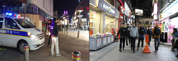 취약지역 순찰(왼쪽) 및 야간 유흥가 순찰. |