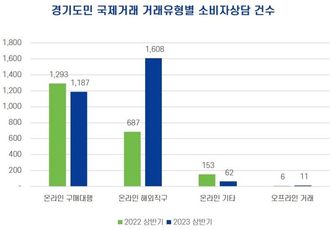 경기도와 한국소비자원이 한국소비자원의 국제거래 소비자상담 자료를 분석한 결과, 올해 상반기 경기도민의 국제거래 소비자불만은 2,868건으로 지난해 같은 기간 2,139건 대비 34.1% 증가한 것으로 나타났다.
