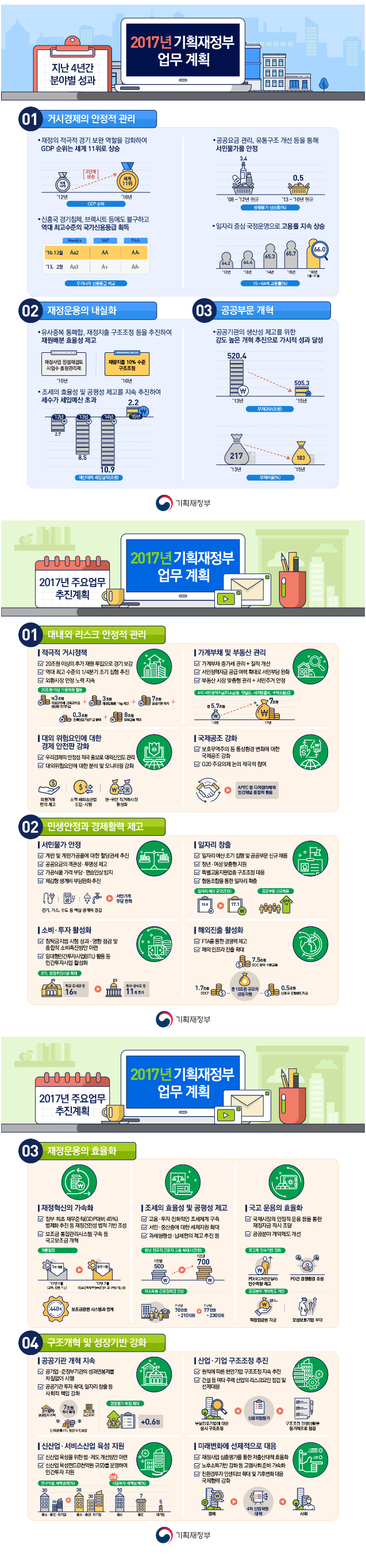 [일간환경연합 장민주 기자]지난 4년간 기획재정부의 분야별 성과와 2017년 신년 기획재정부 업무 계획을 아래의 인포그래픽으로 확인해보세요!
