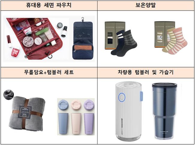 격려품은 지자체별 의견을 반영하여 재난현장에서 활동 시 효용성이 높은 휴대용 세면도구 및 파우치, 보온 양말, 무릎담요 세트, 차량용 텀블러 및 가습기 등 4종으로 선정했다. 28일부터 배송이 시작된다.