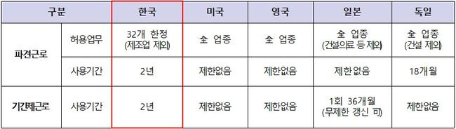 파견 · 기간제 근로 사용규제 비교