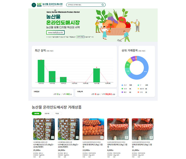 [일간환경연합 김경훈 기자]세계 최초로 ‘농산물 온라인도매시장(kafb2b.or.kr)’이 출범한다.
