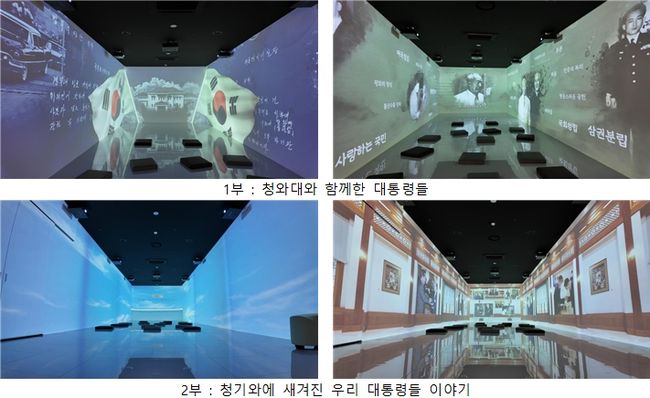 행정안전부 대통령기록관은 12일, 청와대 직접 방문이 어려운 국민도 청와대의 풍경을 관람할 수 있도록 디지털실감영상관 <청기와에 새겨진 우리 대통령들의 이야기>를 개관한다고 밝혔다.