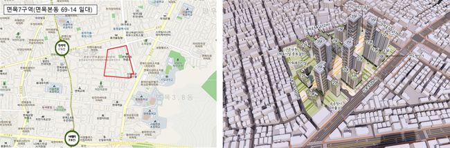 먼저, ‘면목7구역(면목본동 69-14 일대)’는 지난 12월 13일 열린 ‘제8차 도시계획위원회 신속통합기획 정비사업 등 수권분과위원회’에서 ‘주택정비형 재개발사업 정비계획 결정 및 정비구역 지정안’이 조건부 가결됐다.