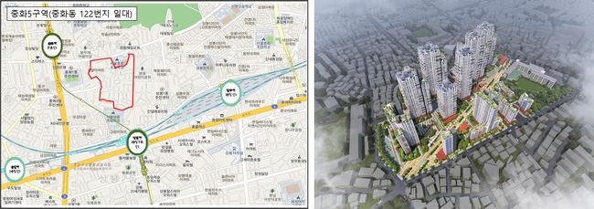 다음으로 2021년 3월에 선정된 공공재개발 후보지 ‘중화5구역(중화동 122번지 일대)’도 추진 동력을 얻었다. 대상지는 ‘2023년 제3차 도시계획위원회 심의’를 통과해 지난 12월 14일 정비구역으로 지정 고시됐다.