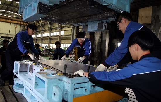 산학일체형 도제학교인 대구공고 전자기계과 금형도제반 학생들이 자동차 프레스금형업체인 대성엔지니어링에서 현장 실습을 하고 있다.