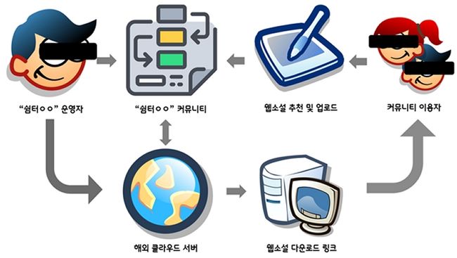 특히 ‘쉼터ㅇㅇ’ 사이트의 경우, 소설 비평(리뷰), 정보소개 게시판 등을 통해 적법한 사이트로 위장한 후 회원으로 가입한 사람에게 특정한 방식으로 클라우드에 저장된 웹소설을 내려받을 수 있도록 링크 주소를 제공해 은밀하게 웹소설 콘텐츠를 불법 공유하고 있었다.