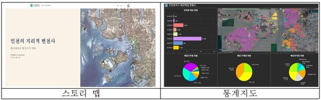 이에, 인천시는 인천의 변화 발전하는 모습을 누구나 알기 쉽게 사진, 지도, 설명 등 다양한 컨텐츠를 활용한 스토리 맵으로 구축했다. 이 스토리 맵은 행정구역의 변화 과정, 시기별 행정구역 비교, 매립의 역사와 경제자유구역의 탄생, 행정 체제 변경의 순서로 이뤄져 있다.