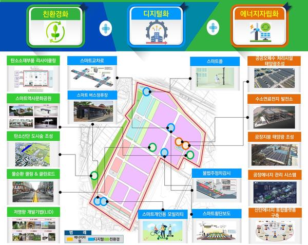 이 산단은 이산화탄소 배출량을 약 26% 감축하고 에너지자립률을 26% 수준 달성할 것으로 기대된다.