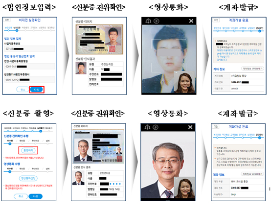 법인고객은 인터넷이나 모바일앱에 사업자등록번호 등의 정보를 입력한 뒤 신분증 진위 확인, 영상통화의 절차를 거쳐 계좌를 발급받을 수 있다.