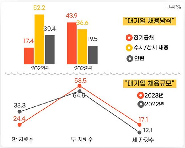 정기공채는 확대되었으나 인턴 채용 줄어