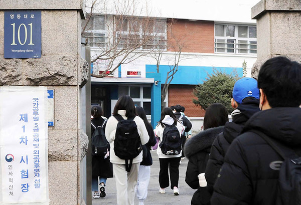 ▲ 국가공무원 5급 공채 및 외교관 후보자 선발 제1차 시험이 치러진 지난 3월 4일 서울 강남구의 한 시험장으로 수험생들이 들어가고 있다. (사진=문화체육관광부 국민소통실)직급별 선발인원은 9급 공채 4749명, 7급 공채 654명, 5급 공채 305명 등으로 정년퇴직 인원 감소, 정부 인력운영 효율화 기조 등을 고려해 결정됐다.