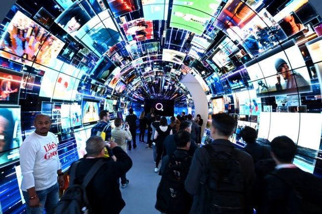 LG전자는 CES 2024 전시관에 아치형 터널 구조의 webOS 콘텐츠 체험 공간을 조성했다. 55형 올레드 디스플레이 140여 대로 터널 내부 벽면과 천정 전체를 감쌌고, 터널 중앙에는 초대형 무선 올레드 TV인 ‘LG 시그니처 올레드 M(모델명: 97M4)’을 설치했다.