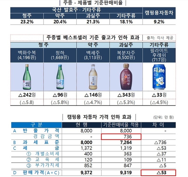 청주와 약주 등 국산 발효주는 기준판매비율 적용으로 올해 2월부터 공장 출고가격이 5.8%까지 내려간다.