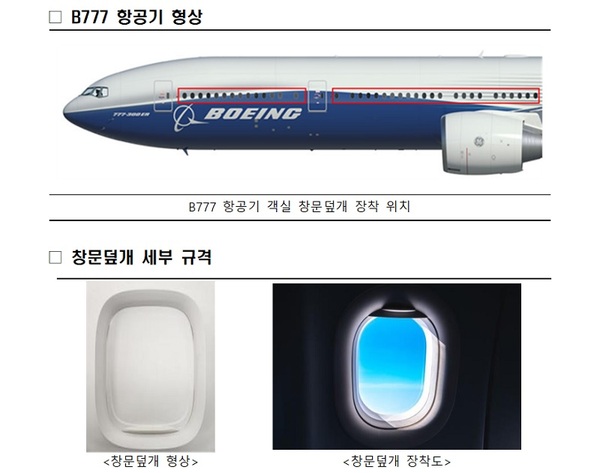 [일간환경연합 장민주 기자]국토교통부는 12일 국내 중소업체인 ㈜지티에이에어로스페이스가 개발한 B777 항공기 객실 창문덮개(Window Shade)에 대해 안전성 인증을 완료하고 국내 항공사에 공급한다고 밝혔다.