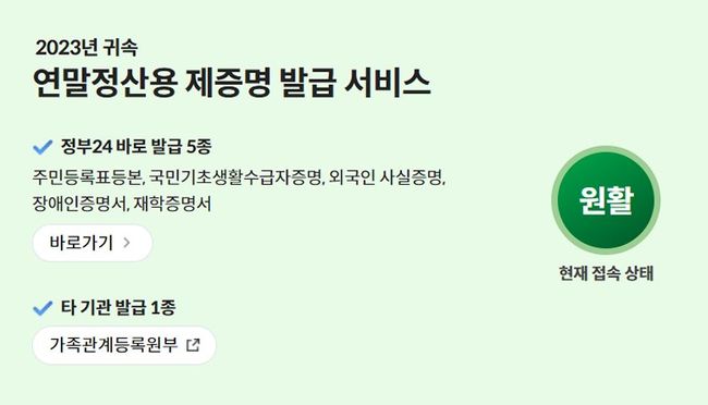 [일간환경연합 장민주 기자] ‘정부24’를 통해 2023년 귀속 연말정산에 필요한 주민등록등본 등 5종의 증명서를 간편하게 발급받을 수 있다.