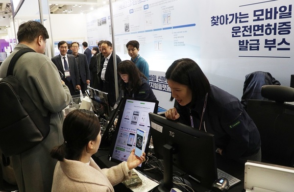 ▲ 지난해 11월 23일 부산 해운대구 벡스코 제2전시장에서 열린 ‘2023 대한민국 정부 박람회’에서 관람객들이 모바일 운전면허증을 발급받고 있다. 2023.11.23. (ⓒ뉴스1) 우리나라는 2019년에 디지털정부 평가 1위에 이어, 올해 발표한 제2회 평가에서도 종합 1위를 달성했다.