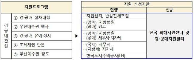 이에 피해자가 서울・경기・인천・부산・대전 전세피해지원센터 및 경・공매지원센터(종로)를 방문하여 기초・법률상담을 받은 후 지원 신청서류를 작성하면, 별도의 기관 방문 없이도 지원신청이 가능하도록 하는 원스톱 서비스를 개시한다.
