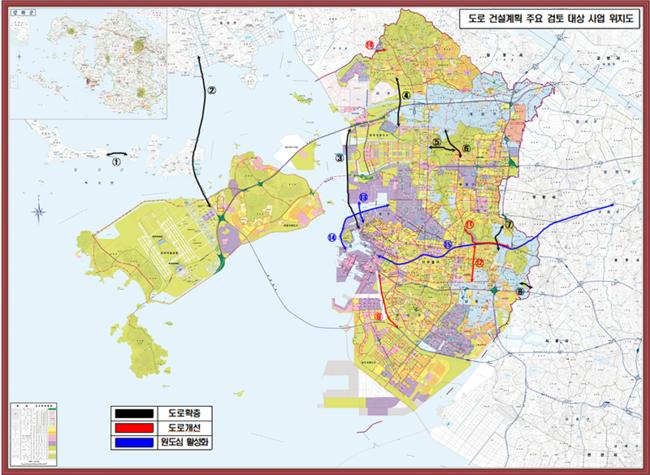 이 용역은 크게 대규모 개발사업*과 연계한 도로확충 및 개선, 원도심 활성화 등을 목표로 한 건설계획과 재난대응체계 구축 및 주요 교차로 구조개선 등을 목표로 구분해 추진한다.