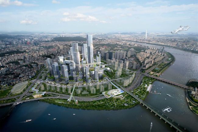 용산국제업무지구 조감도. 한강에서 바라본 전경.
