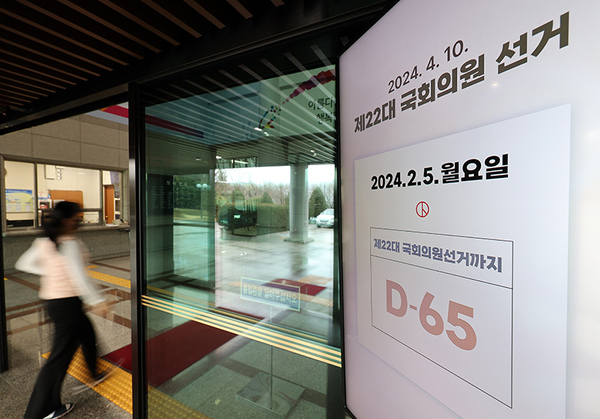 ▲ 제22대 국회의원 총선거 65일을 앞둔 지난 5일 오후 경기도 과천 중앙선거관리위원회 입구 총선 디데이 전광판에 D-65가 나타나고 있다. (ⓒ뉴스1) 합동감찰반은 공직선거법 제85조 및 제86조, 지방공무원법 제57조 등에 근거해 지방공무원의 선거중립 의무 및 선거관여 금지 위반, 선거관련 SNS 게시글에 지지·반대의사 표명 등에 대해 집중 감찰한다.