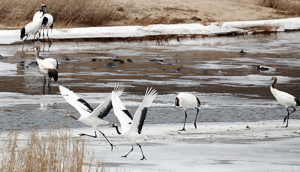 ▲ 강원도 철원군 한탄강에서 두루미 무리가 겨울을 보내고 있다. (ⓒ뉴스1)