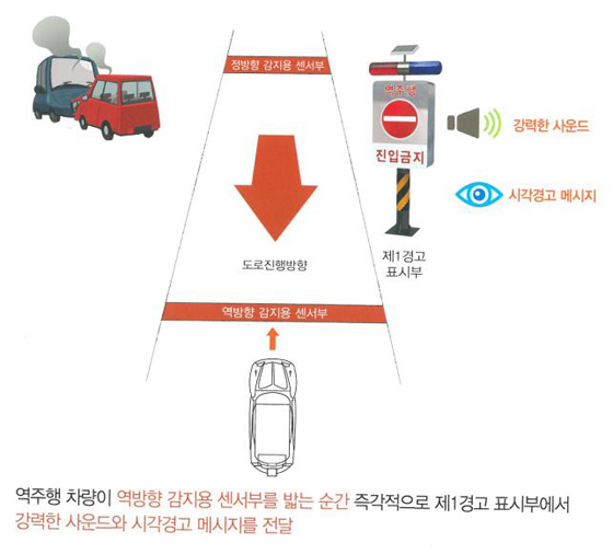 이에 지난 2015년 국토부는 과거 3년동안 역주행 사고가 발생한 59곳 중 사고 위험이 높은 11곳을 선정해 안전표지·노면표시 정비, 자동감지·경보장치를 시범적으로 설치했다. 이후 역주행 사고 조사결과, 과거 3년 대비 사고 건수가 무사고로 감소해 시설개선에 따른 사고예방 효과를 거뒀다.