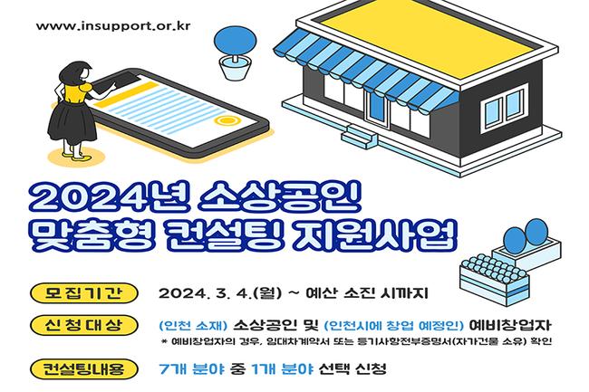 인천광역시는 인천지역 소상공인 및 예비 창업자를 대상으로 전문 컨설턴트와 1:1 매칭을 통한 소상공인 맞춤형 컨설팅을 지원한다고 밝혔다.