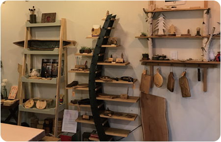 가게 문을 열면 향긋한 나무 냄새가 반겨주는 공간. 원목가구로 가구 및 소품을 만들어 파는 나무 공방이다. 주인장이 직접 고른 질 좋은 원목을 사용한다. 도마와 액세서리 진열대처럼 부피가 작은 소품부터 원목테이블, 의자, 수납장 등 부피가 큰 가구까지 다양하게 주문을 받는다.
