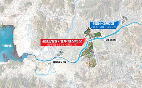 순천만 국가정원 국제습지센터에 앵커 기업 1∼2개사, 원도심에 30여개 기업의 입주 공간과 시민들을 위한 복합문화공간을 구성하는 것이 핵심이다.