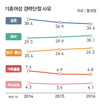 한편 지난해 통계청의 ‘일·가정 양립 지표’에 따르면 15~54세 기혼여성 927만 3000명 중 결혼, 육아, 임신 및 출산 등의 사유로 직장을 그만둔 경력단절여성은 20.6%(190만 6000명)로 나타났다.