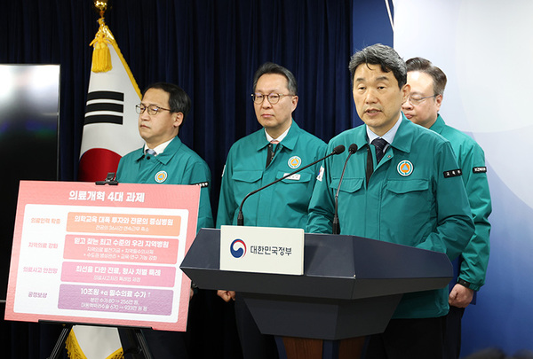 이주호 사회부총리 겸 교육부 장관은 이날 의대정원 증원 발표 브리핑에서 “우리나라 의대 정원은 27년 동안이나 늘지 않았고 오히려 2000년 의약분업 이후에는 감축됐다”면서 “2023년 기준 우리나라 고령인구 비중은 18.4%로 2025년에는 초고령사회로 진입할 것이 전망되는 점과 지방의료의 붕괴가 더욱 가속화될 것이라는 경고를 고려할 때 향후 의료인력에 대한 사회적 수요가 더욱 증가할 것으로 예상된다”고 말했다.