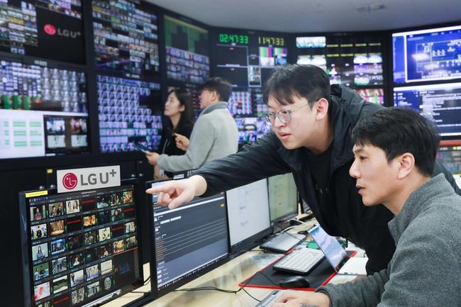 LG유플러스는 오는 7월 프랑스 파리에서 개최되는 국제 스포츠 대회 방송 회선을 국내 지상파 방송 3사(KBS/MBC/SBS)에 단독으로 제공한다고 25일 밝혔다. 사진은 LG유플러스 안양사옥에서 방송 회선을 관제하는 LG유플러스 임직원의 모습.
