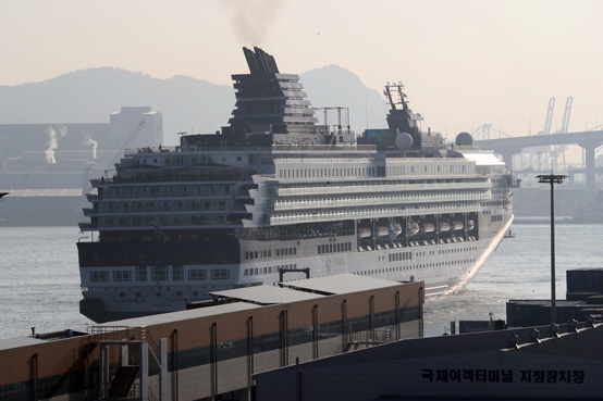지난 1월 부산항에 첫 입항한 중국 크루즈 스카이 씨 골든 에라 호 모습 이 배는 승객 2200여 명과 승무원 800여명이 타고 있다. <사진=연합뉴스 제공> |