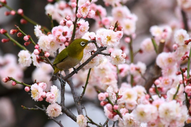 ![]() 봄소식을 전하는 매화. 마중나온 동박새. |
