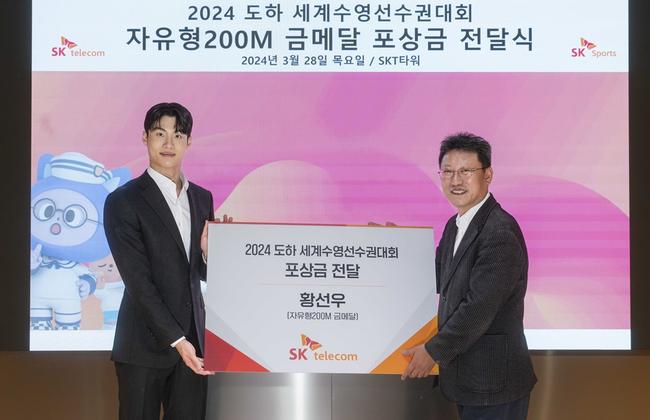 지난 2022년부터 3년째 황선우 선수를 지원하고 있는 SKT는 “황선우 선수의 세계선수권 우승을 격려하고, 오는 2024 파리올림픽에서의 선전을 기원하기 위해 특별 포상금을 전달했다”고 설명했다.