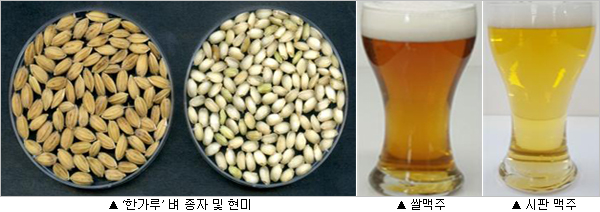 농촌진흥청(청장 정황근)은 우리 쌀로 만든 쌀맥주 제조기술을 개발하고, 쌀맥주 가공적성과 품질이 우수한 양조용 벼 품종으로 '한가루'가 적합하다고 밝혔다.