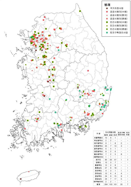 이는 대규모 공공택지 공급을 축소하는 정부정책과 사회·경제적 여건 변화에 따라 도시개발사업 규모가 실질적인 수요를 반영해 중소규모화 위주로 추진되고 있기 때문인 것으로 풀이된다.
