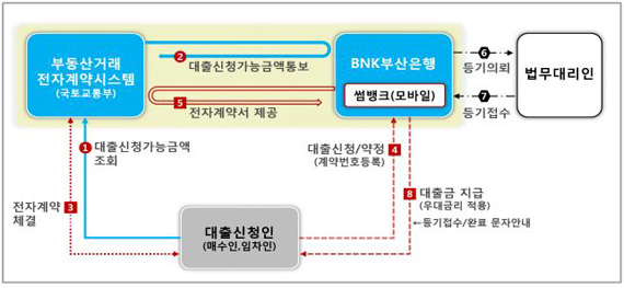 한편, 종전에 대출금리를 0.2%p 인하해 주는 KB국민·우리·신한은행에 추가해 부산은행, 경남은행이 동참하고 조만간 모 금융기관도 참여의사를 밝히고 있어 전자계약을 이용하면 국민들의 거래부담은 다소나마 줄어들 것으로 본다.