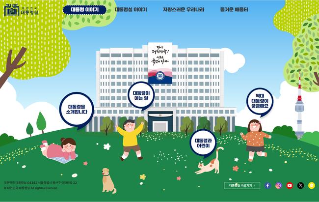 이번에 공개된 어린이 누리집은 ▴대통령 이야기, ▴대통령실 이야기, ▴자랑스러운 우리나라, ▴즐거운 배움터 등의 코너로 구성됐다.