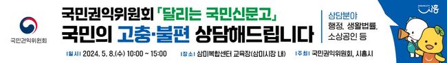백종은 시흥시 시민호민관은 “국민권익위원회와 함께하는 이번 달리는 국민신문고를 통해 그동안 민원 해결이 어려웠거나 전문가의 상담이 필요한 시민들의 고충이 해소되는 소중한 기회가 되길 바란다. 생활 속 고충이나 어려움을 겪고 있는 소상공인, 취약계층 시민들의 많은 관심과 참여를 부탁드린다”라고 당부했다.
