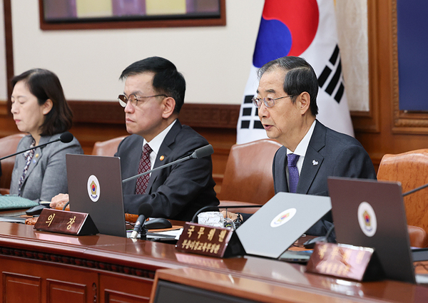▲ 한덕수 국무총리가 7일 서울 종로구 정부서울청사에서 열린 국무회의에서 모두발언을 하고 있다. (ⓒ뉴스1) 한 총리는 “민간과 시장 중심의 성장전략을 일관되게 추진한 결과, 어려운 여건 속에서도 경제 회복의 청신호가 켜지고 있다”고 평가했다.