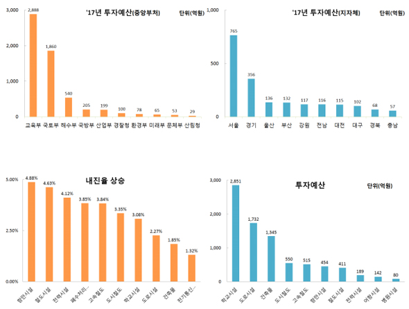 투자 금액별로는 학교시설(2851억원)과 도로시설(1732억원), 건축물(1345억원) 등에 많은 예산이 투입된다.